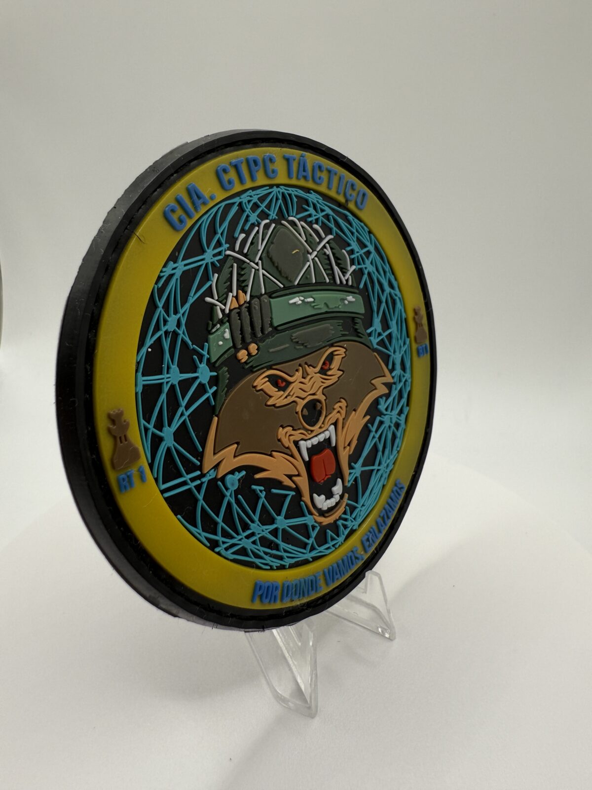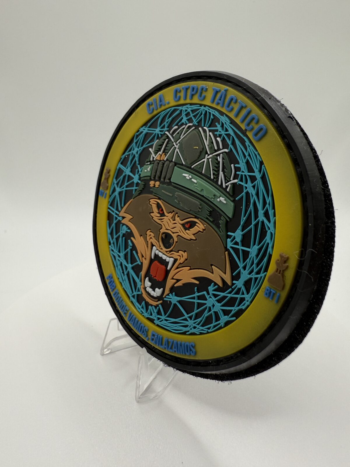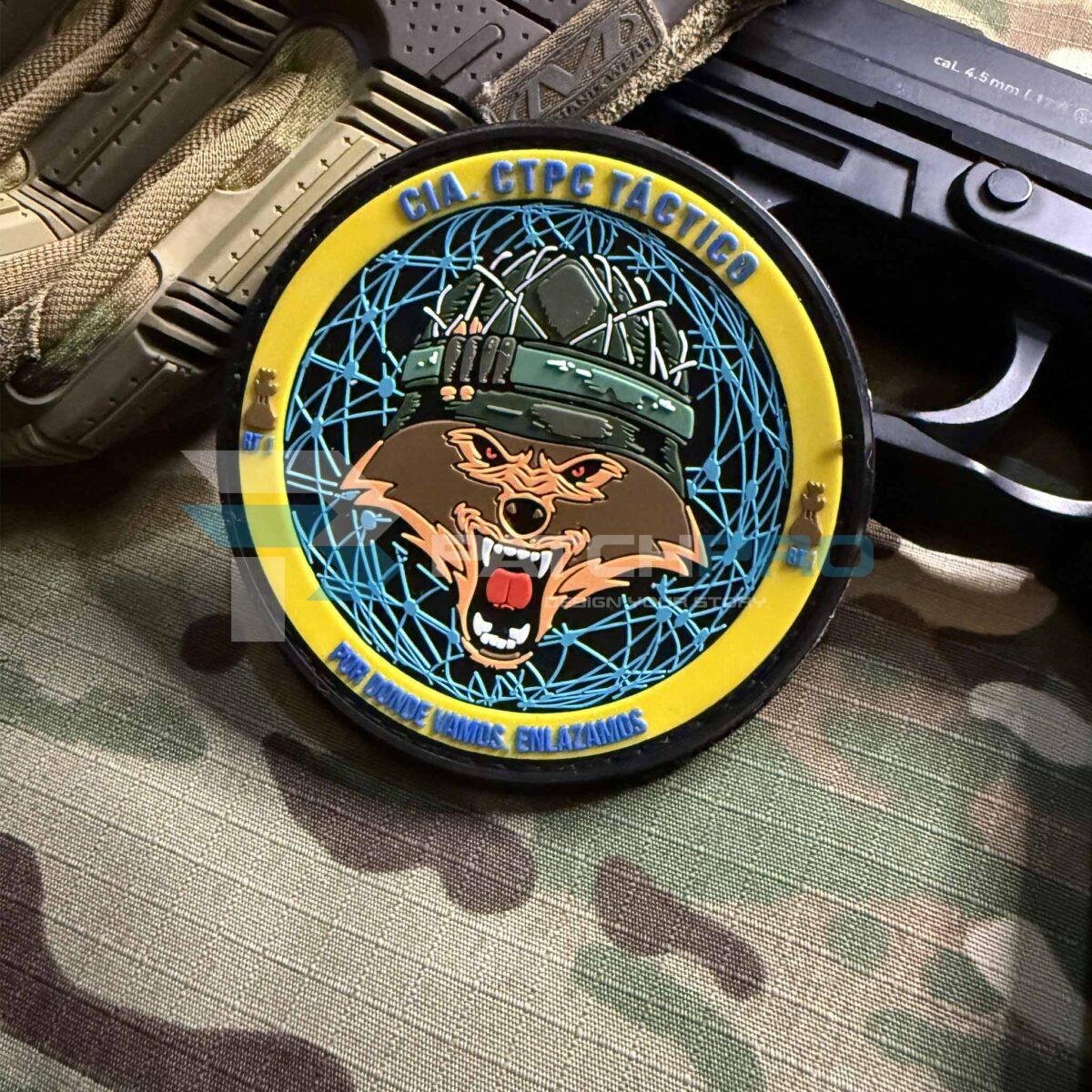 Este parche en PVC de 8 cm, diseñado para la CIA. CTPC TÁCTICO del RT1, refleja la esencia y el espíritu de esta unidad con un diseño lleno de simbolismo y fuerza. En el centro, un feroz lobo con casco militar y detalles en su expresión destaca como símbolo de liderazgo, astucia y lealtad, cualidades que representan perfectamente al equipo.