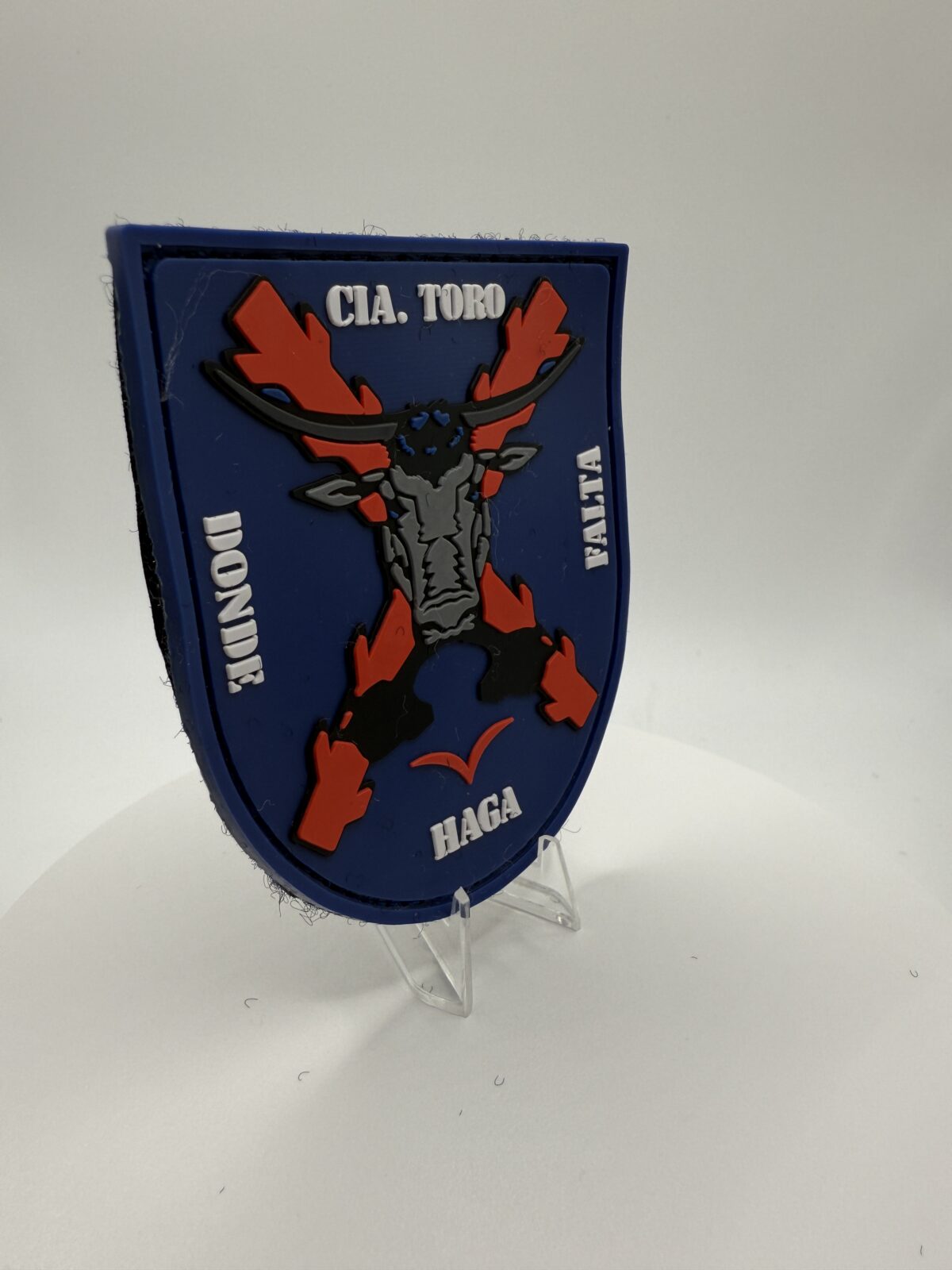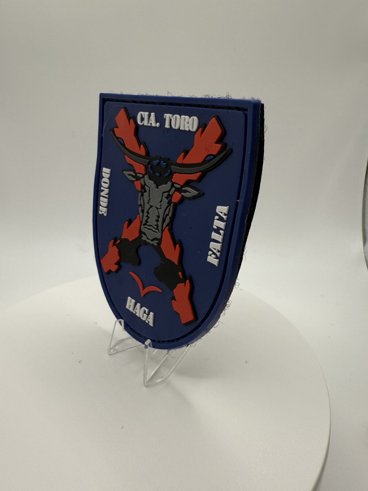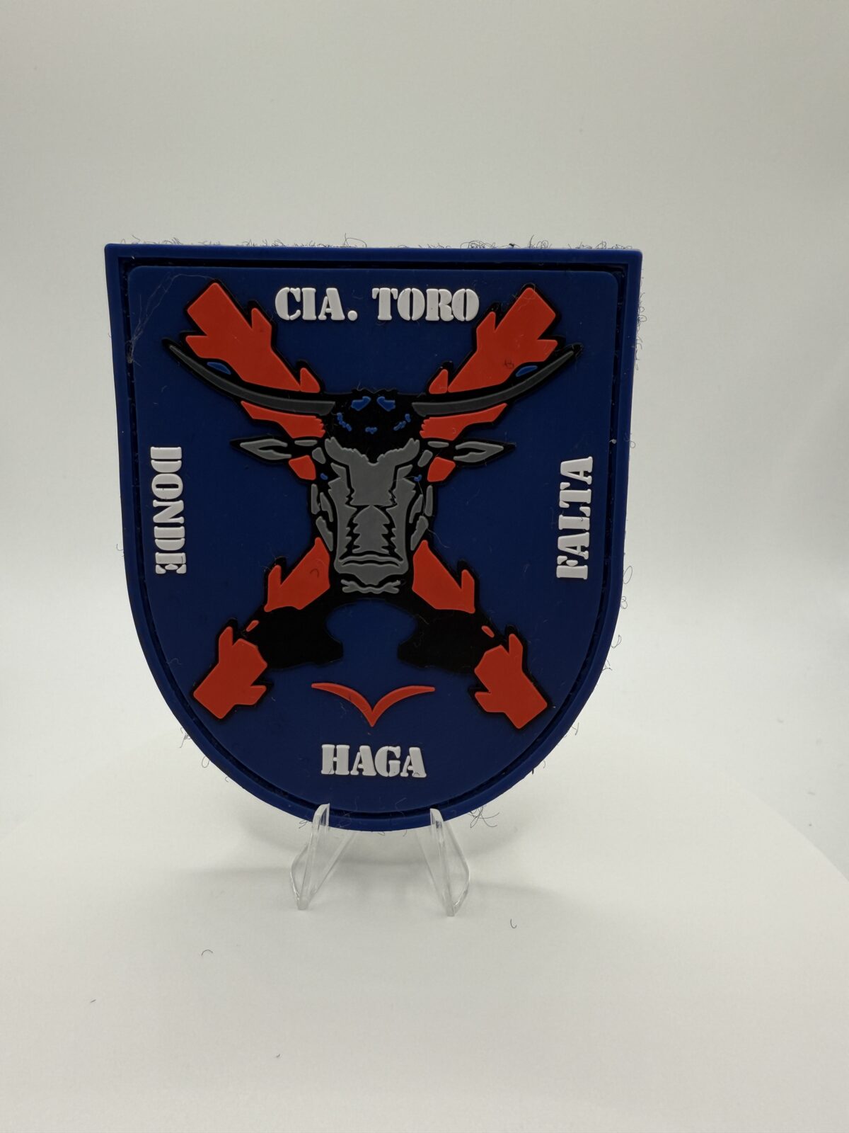 El parche PVC CÍA. TORO representa la fuerza y el espíritu combativo de una de las unidades más emblemáticas del Ejército Español.