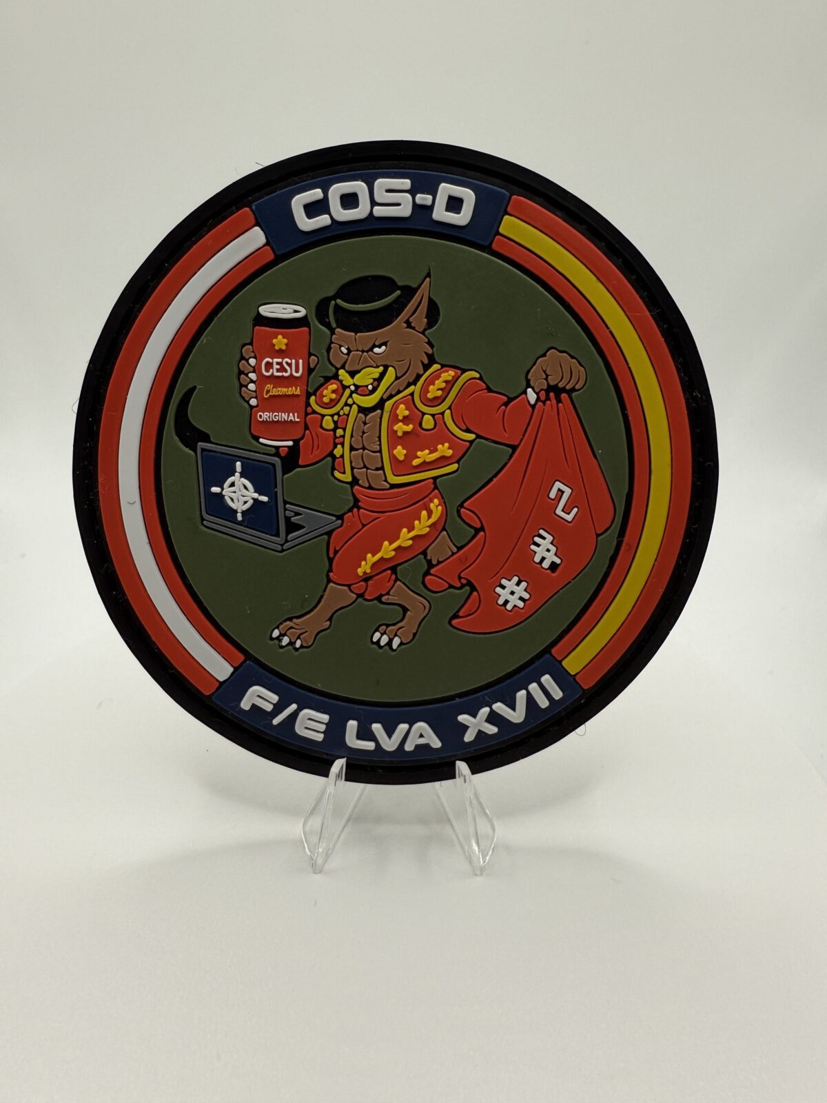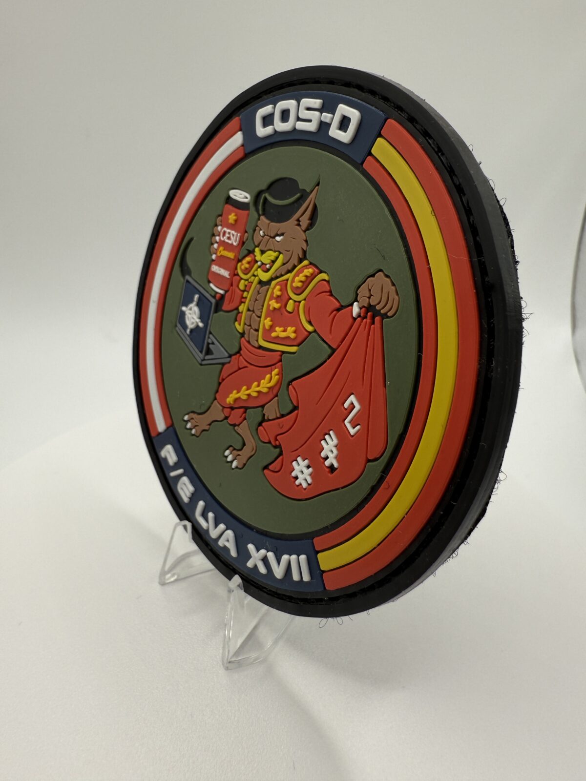 El parche PVC COS-D F/E LVA XVII representa el espíritu, la camaradería y el humor característico de las unidades del Ejército Español.