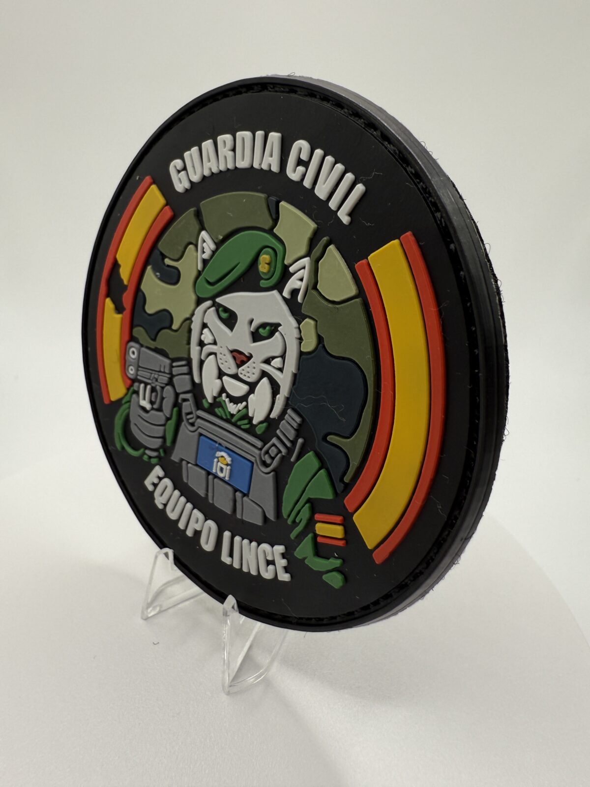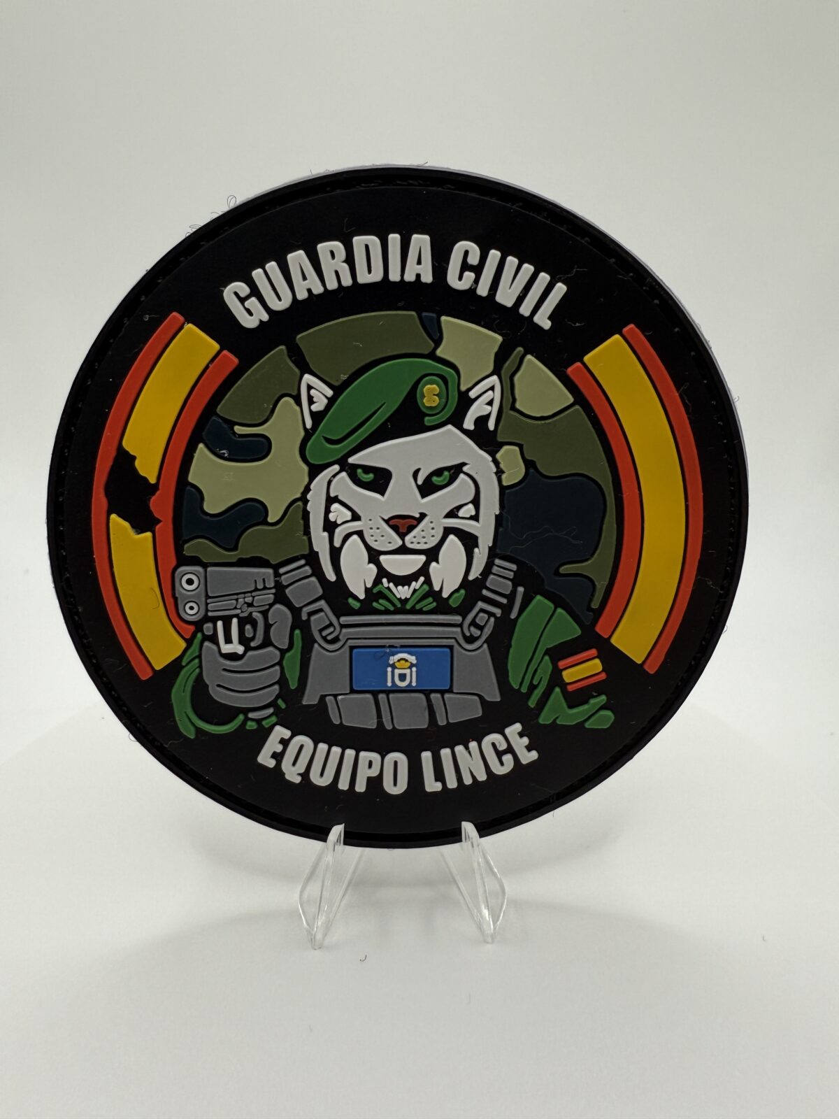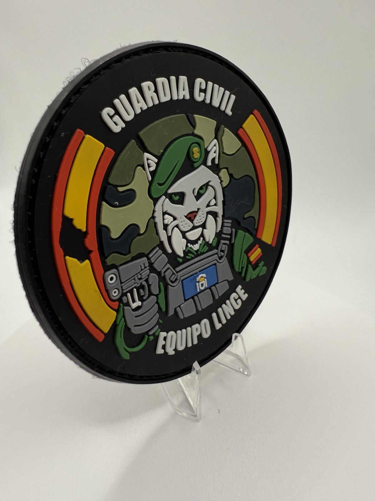 Parche de PVC del Equipo Lince de la Guardia Civil. Diseño táctico con lince, bandera de España y velcro trasero. Un símbolo de vigilancia y compromiso.