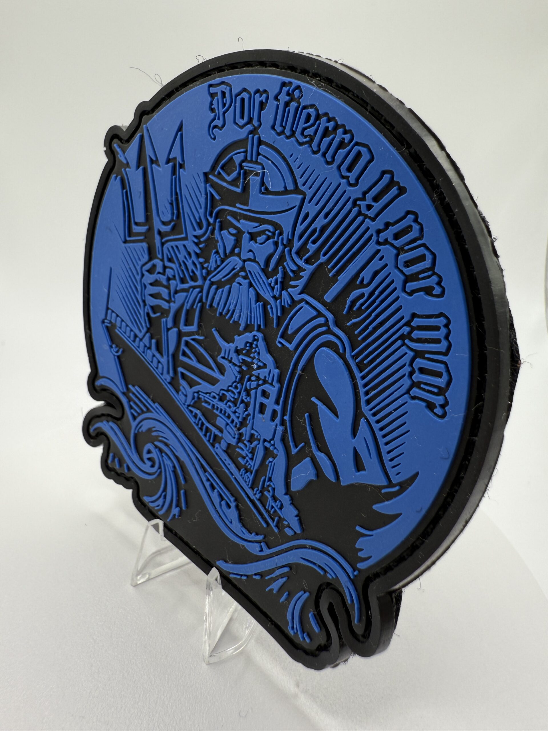 El lema “Por tierra y por mar” destaca en la parte superior, subrayando la versatilidad y capacidad de los equipos de élite que inspiran este diseño. Los tonos azulados y marrones añaden un toque táctico y clásico, mientras que los detalles del guerrero y el buque transmiten fuerza, historia y compromiso con la misión. Resistente al agua, al desgaste y a las condiciones más extremas, este parche es perfecto para equipamiento táctico, mochilas o chaquetas. Ideal para quienes llevan consigo el orgullo de la historia y la acción en cualquier terreno.
