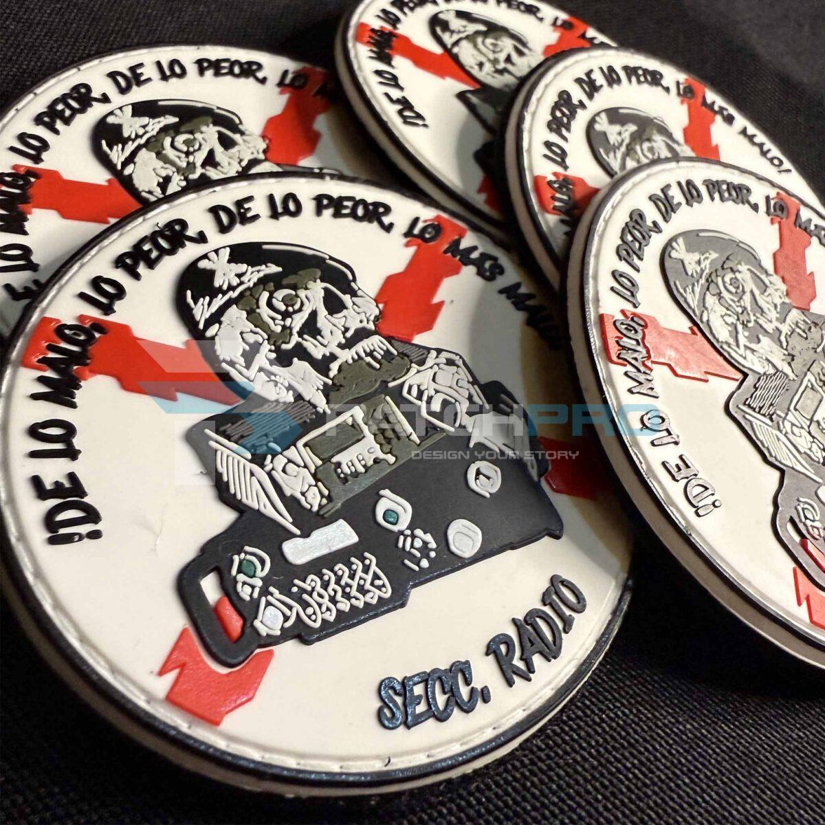 Parche de 8 cm en PVC de alta calidad, diseñado para la Sección Radio del RT 1 de Huesca. Con su calavera y equipo de radio, acompañado del lema «¡De lo malo, lo peor, de lo peor, lo más malo!», refleja el orgullo y la fortaleza de la unidad. Ideal para uniformes y accesorios.