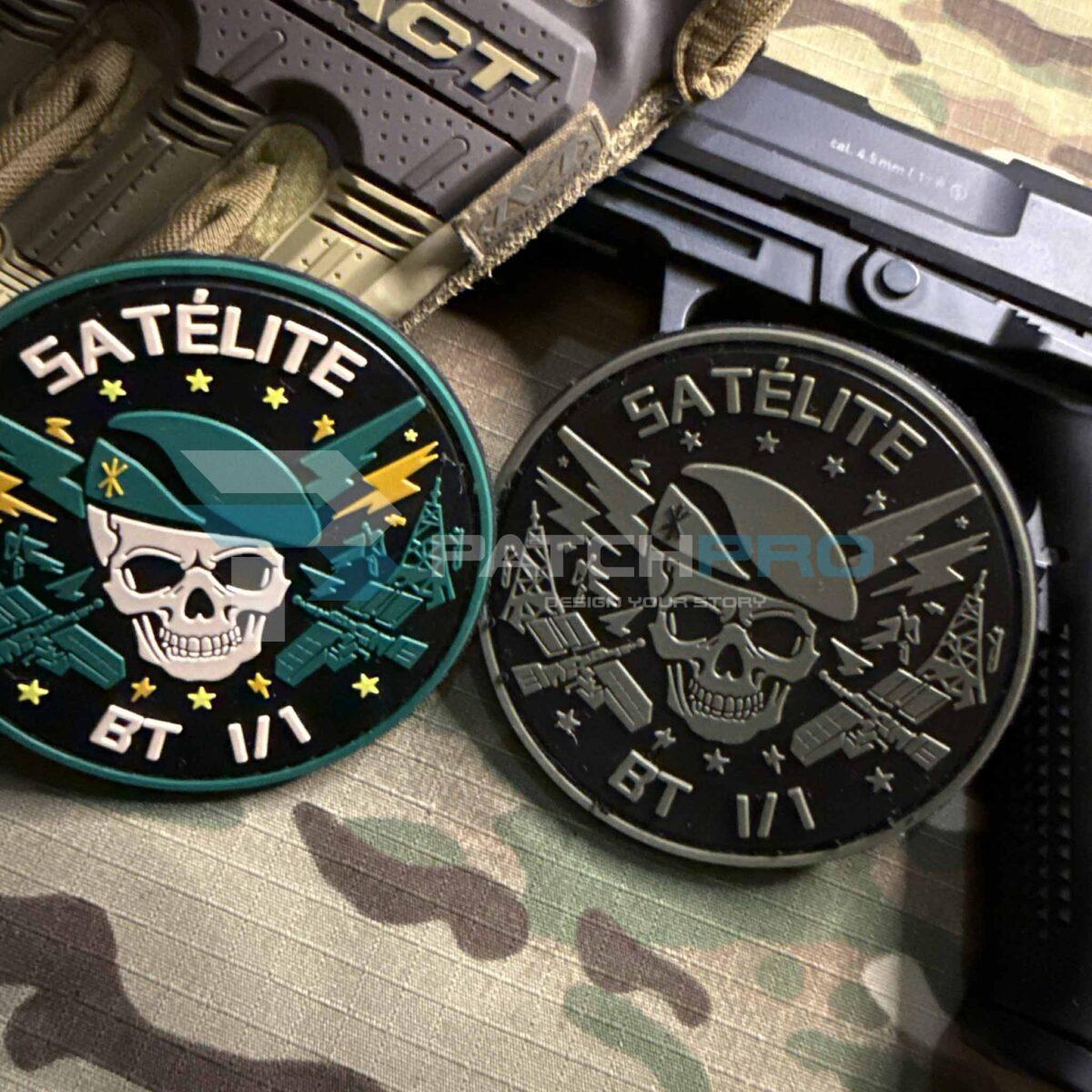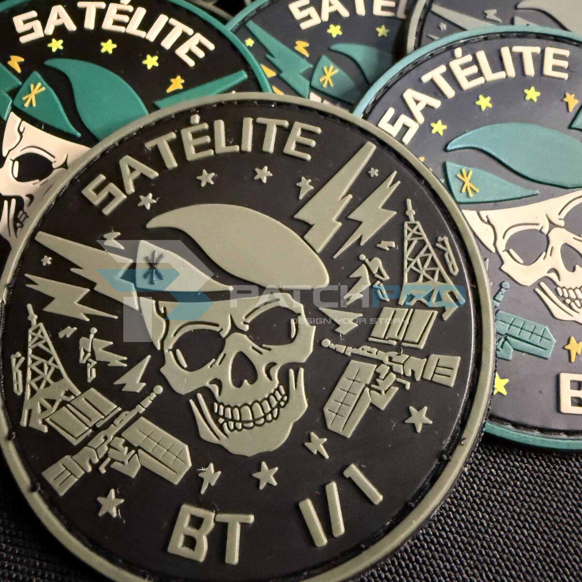 El lema SATÉLITE BT I/1, acompañado de iconografía de satélites y antenas de comunicación, simboliza la excelencia operativa y la precisión de esta sección en misiones críticas. Es más que un accesorio; es una declaración de orgullo y pertenencia para quienes forman parte de esta destacada unidad.